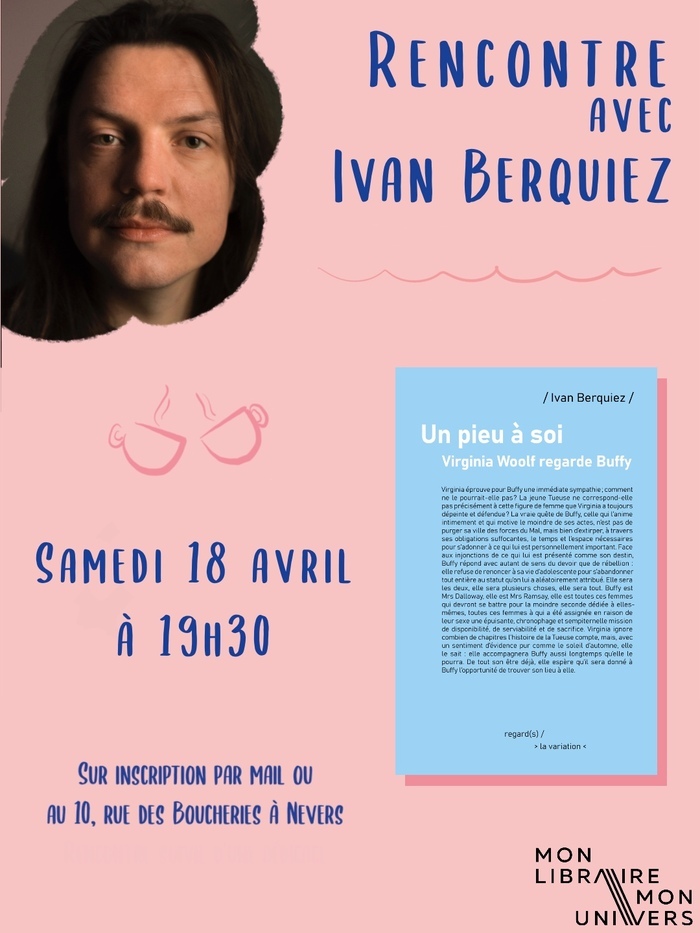 On vous donne rendez-vous pour rencontrer Ivan Berquiez et échanger autour de son premier roman Un pieu à soi : Virginia Woolf regarde Buffy